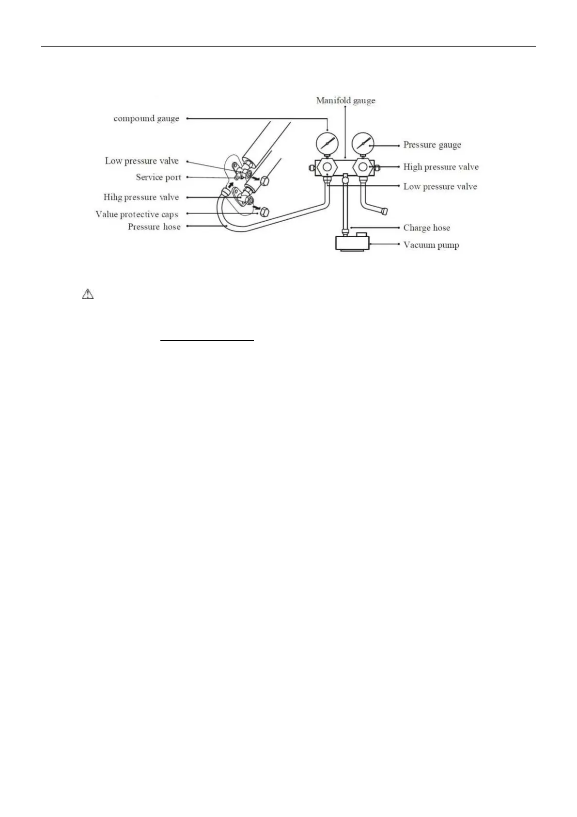 air conditioner, reduce its efficiency, and cause injury .Use a vacuum pump and manifold gauge to evacuate