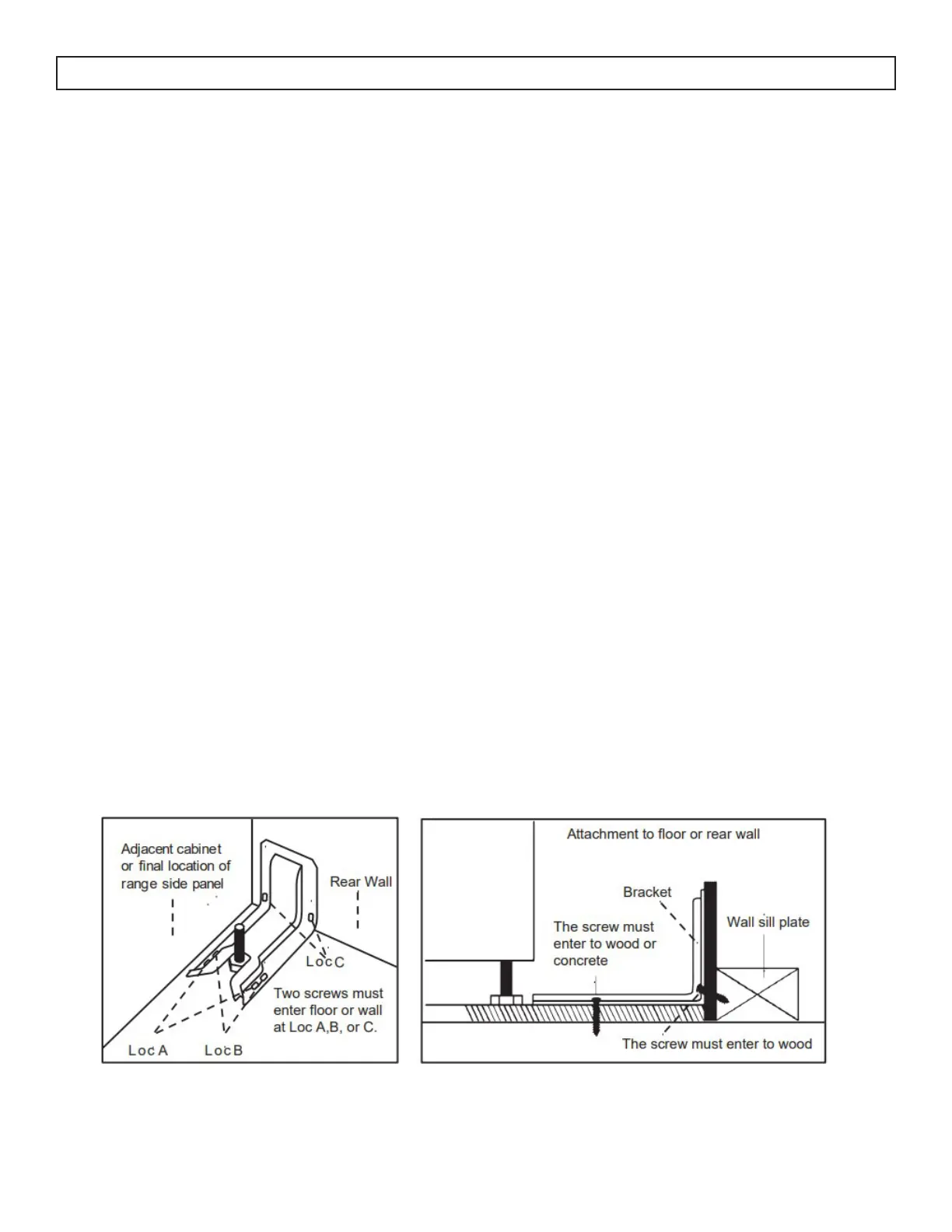 Place the bracket on the floor with the back edge against the rear wall. If the range does not reach the rear