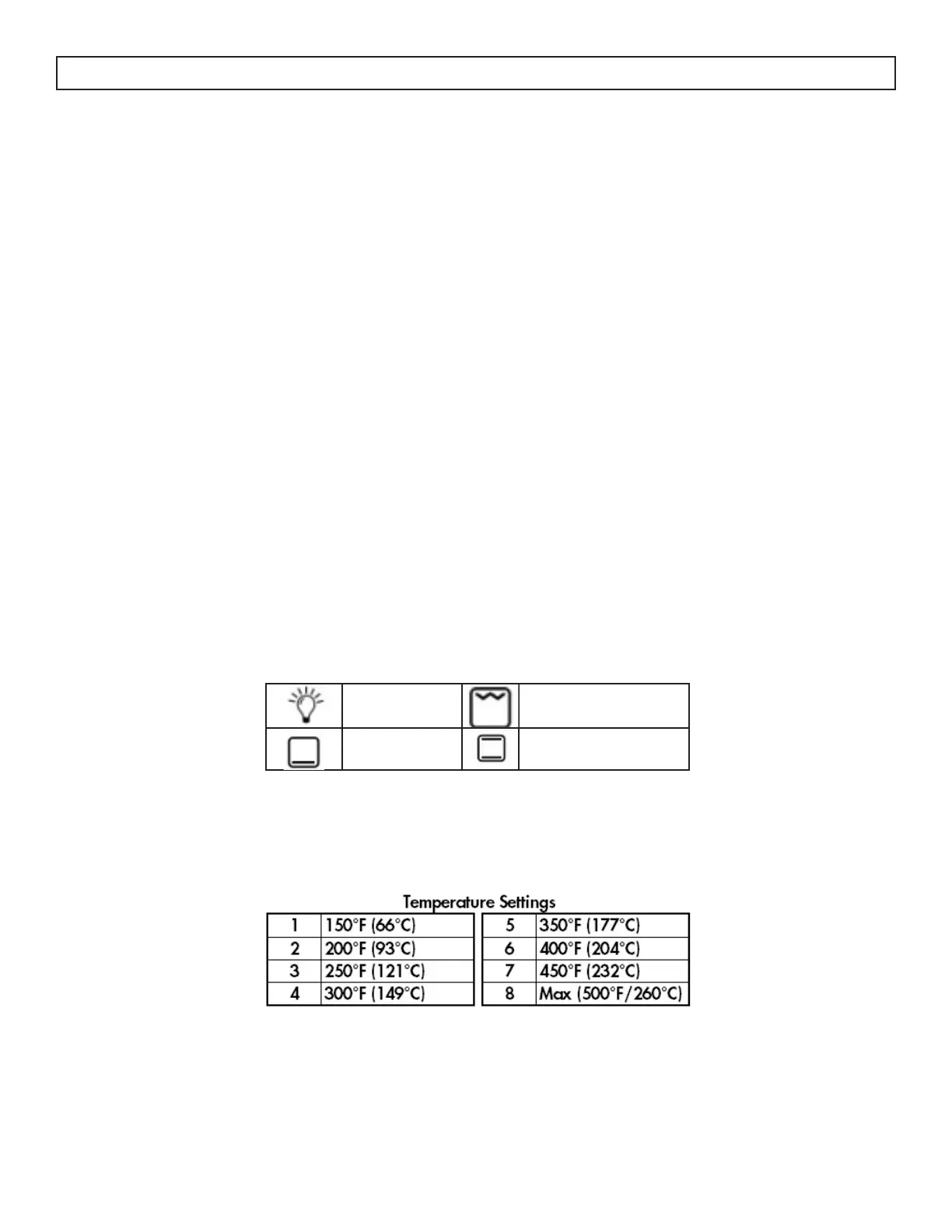 There are 4 oven settings and 8 temperature setting to select from as shown in the tables below.
