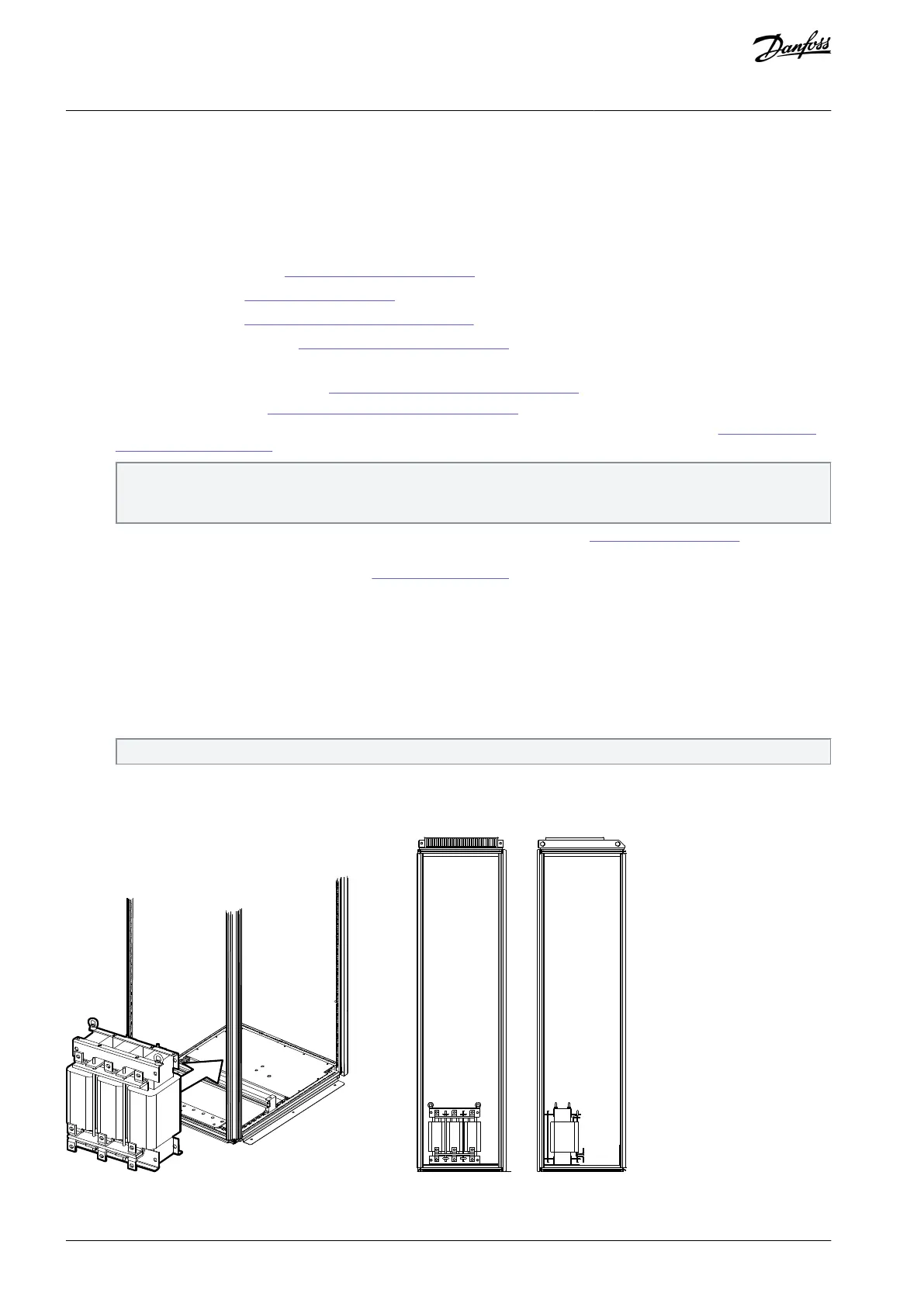 If the cabinet is transported in horizontal position, install an upper support plate above the AC choke, and equip the sup-