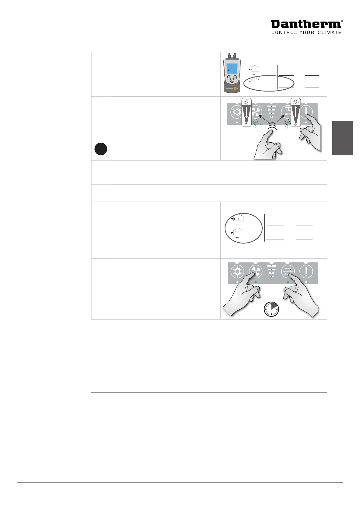 9 Check the airow in all rooms and adjust the airow rate by opening/closing the