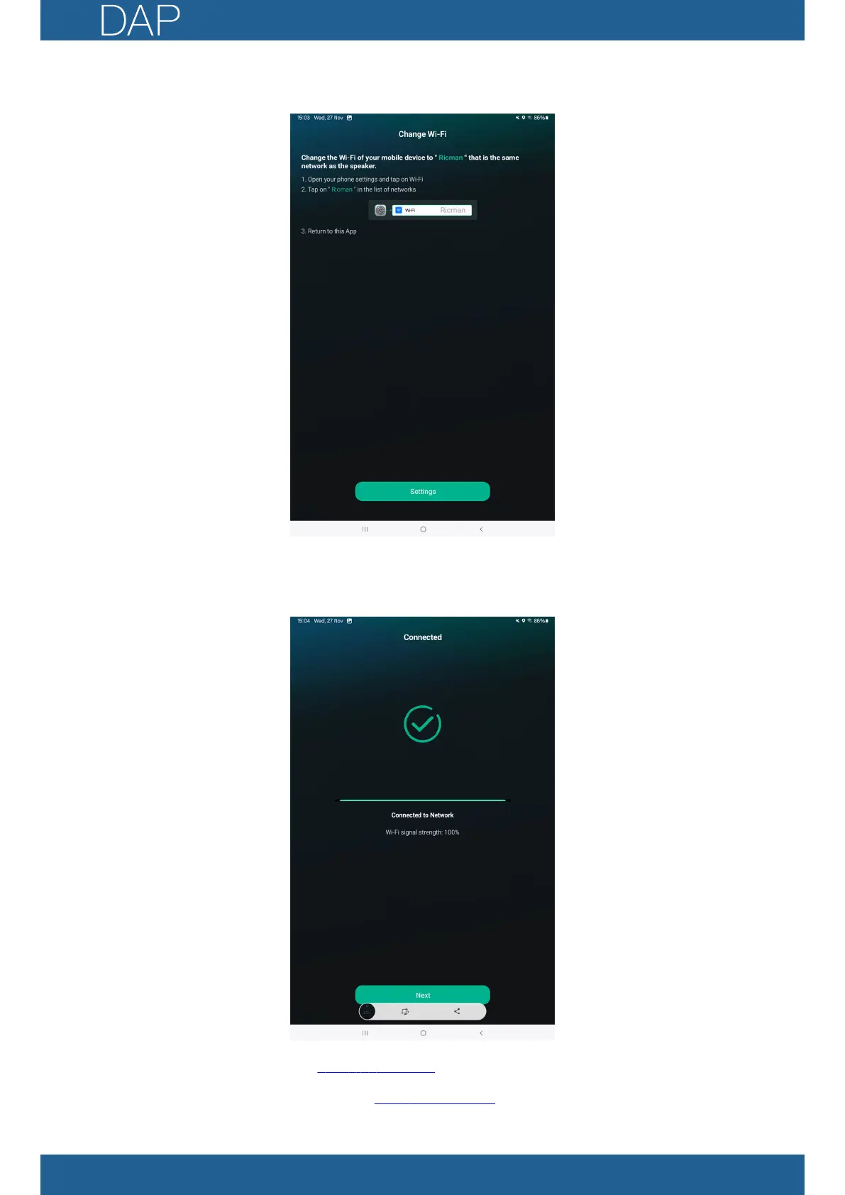 13) Press 'Settings' to connect your device to the same network as the PA-5500SA.