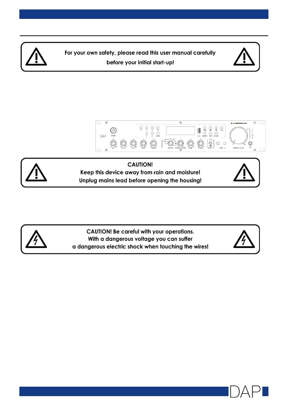 Bekijk gratis de handleiding van DAP Audio ZA-9120DAB, stel vragen en lees de antwoorden op veelvoorkomende problemen, of gebruik onze assistent om sneller informatie in de handleiding te vinden of uitleg te krijgen over specifieke functies.