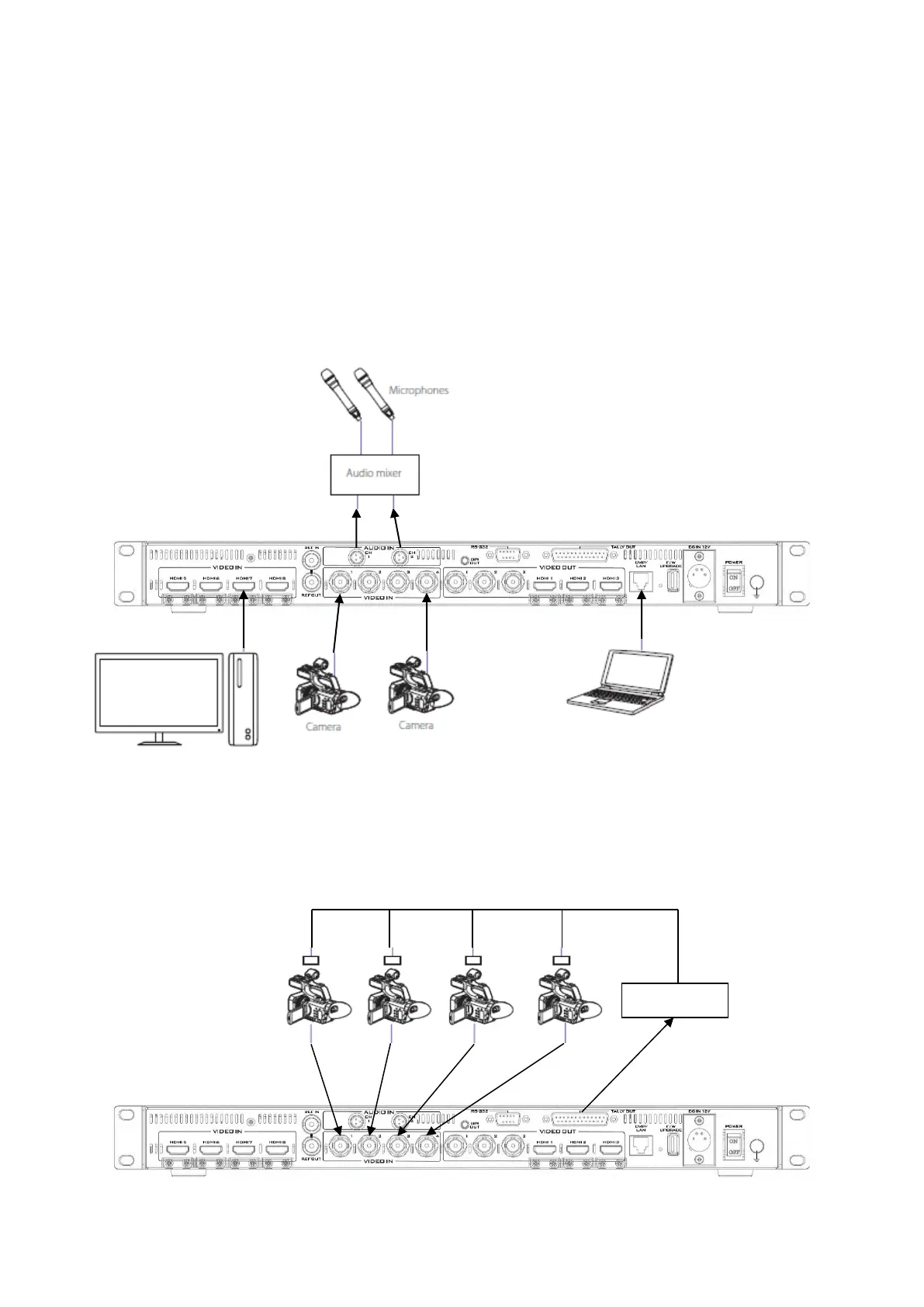 on the rear of the unit and connect an audio mixer to audio input connectors.