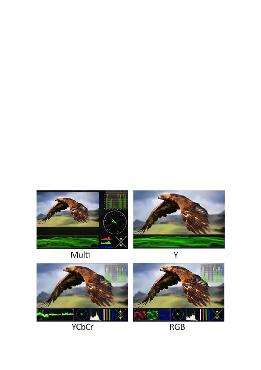 monitoring waveforms such as the vector scope, histogram and audio level meter.