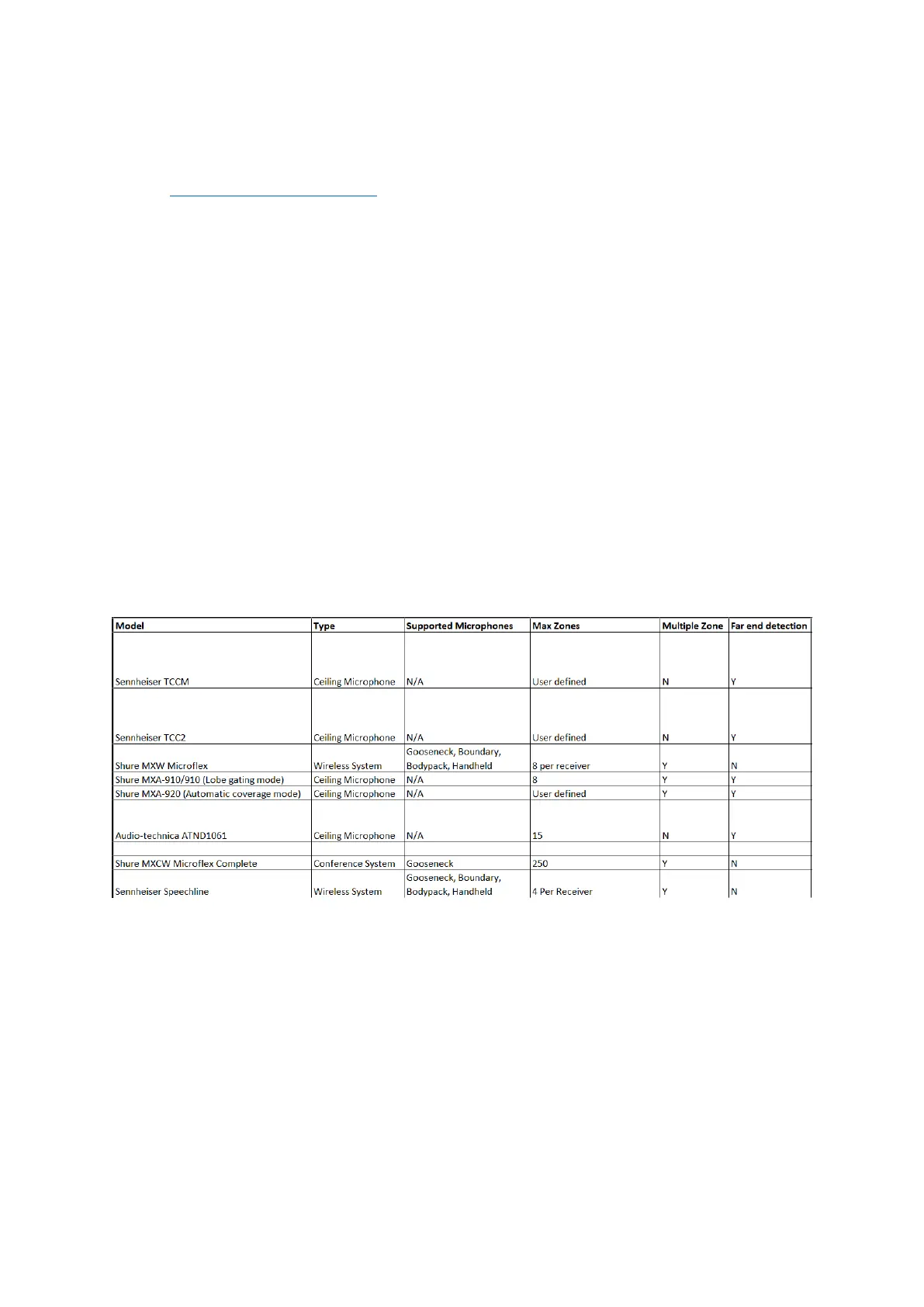 its AEC/Reference input. Please Note: All microphones can support far end detection with an