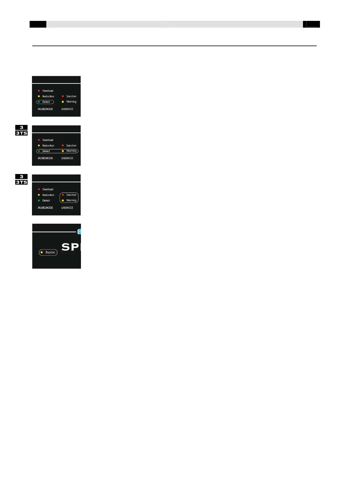 DETECT-LED (8) Blinkt: Die ersten Sekunden nachdem der Limiter eingeschaltet