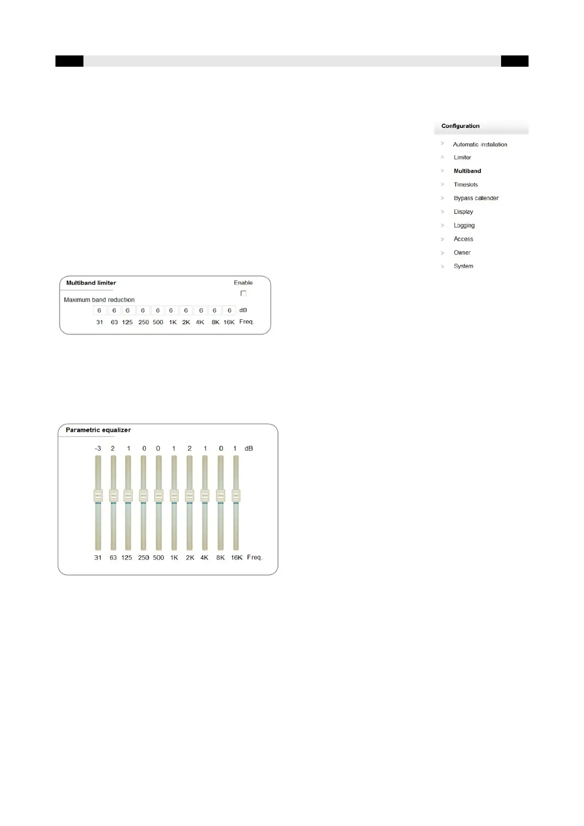 can be corrected by 12dB. The equalizer settings do not affect the multiband limiter.