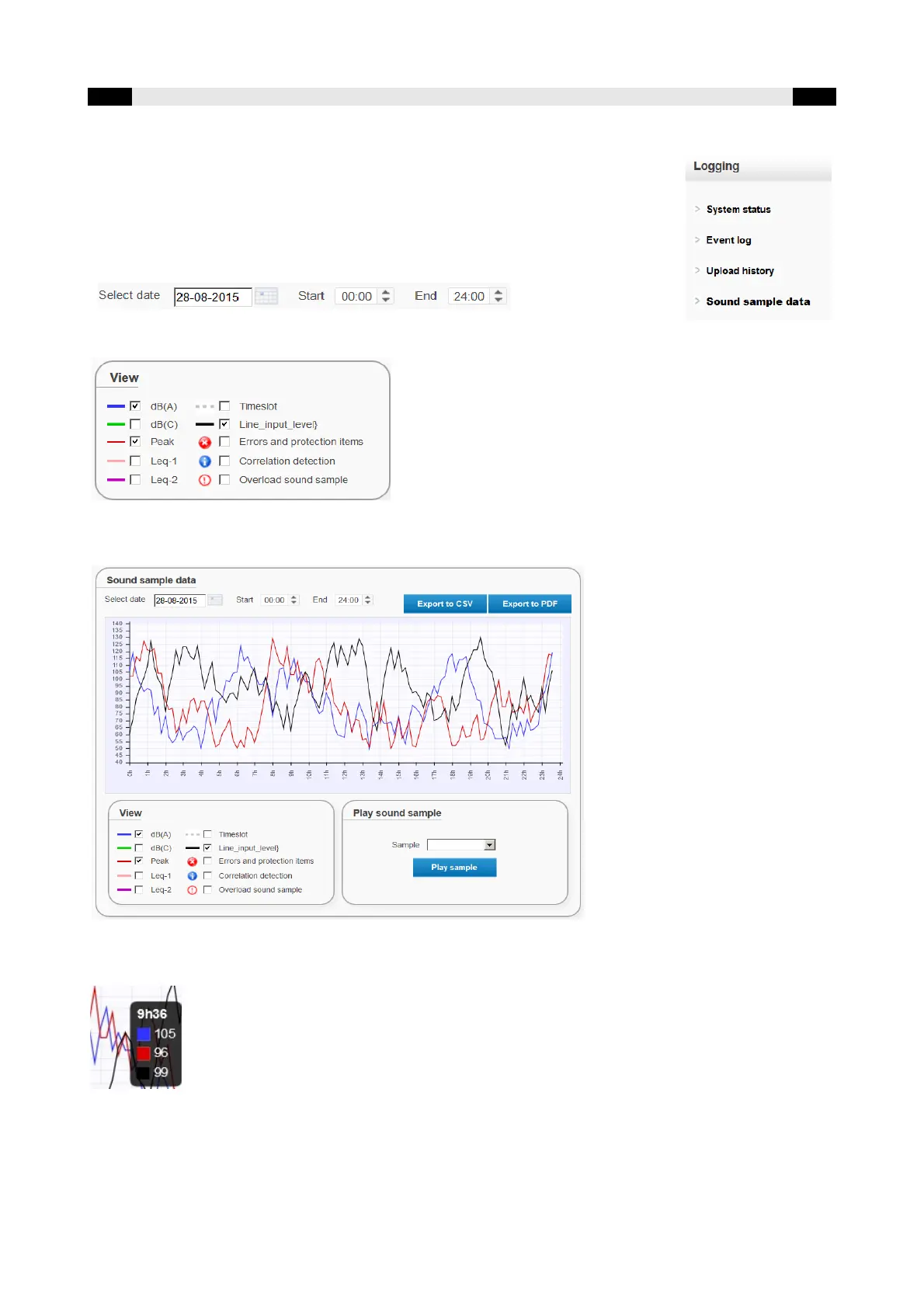 All sound samples can be exported and stored to PDF or CSV for further analysis or legal