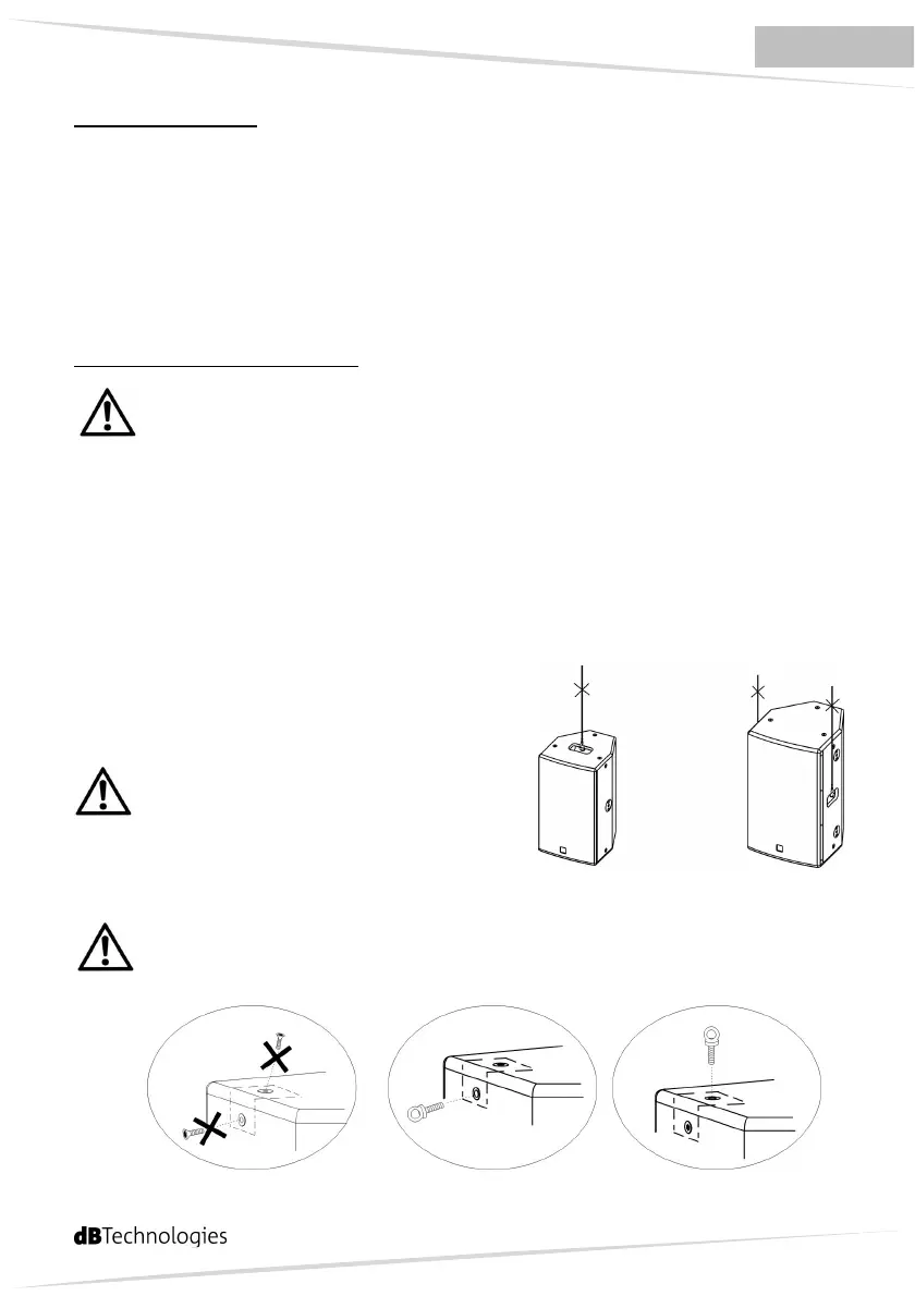 sistemi di ancoraggio. Prima si sospendere il diffusore controllare tutti i componenti da