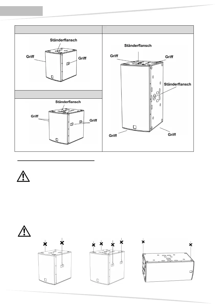 Mit den Griffen ausschließlich für die Handhabung der einzelnen Lautsprecher.