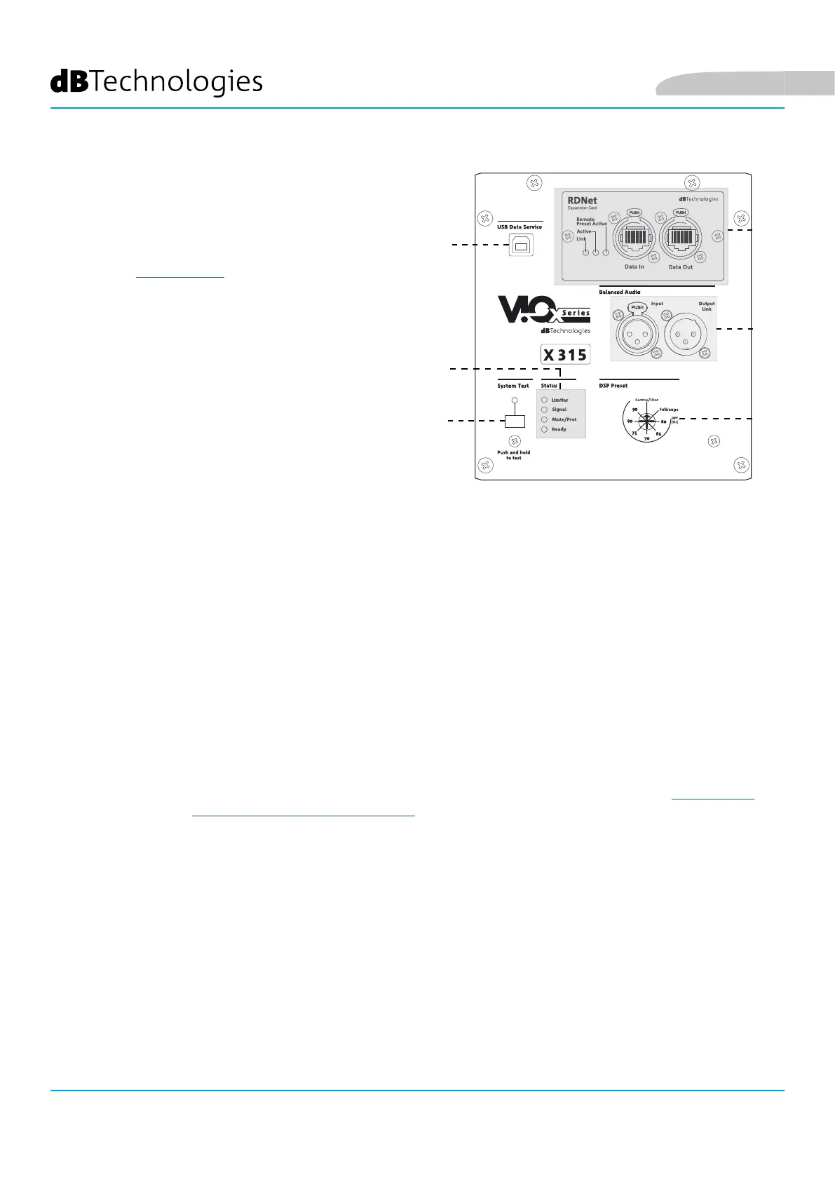 Bekijk gratis de handleiding van DB Technologies VIO X315, stel vragen en lees de antwoorden op veelvoorkomende problemen, of gebruik onze assistent om sneller informatie in de handleiding te vinden of uitleg te krijgen over specifieke functies.