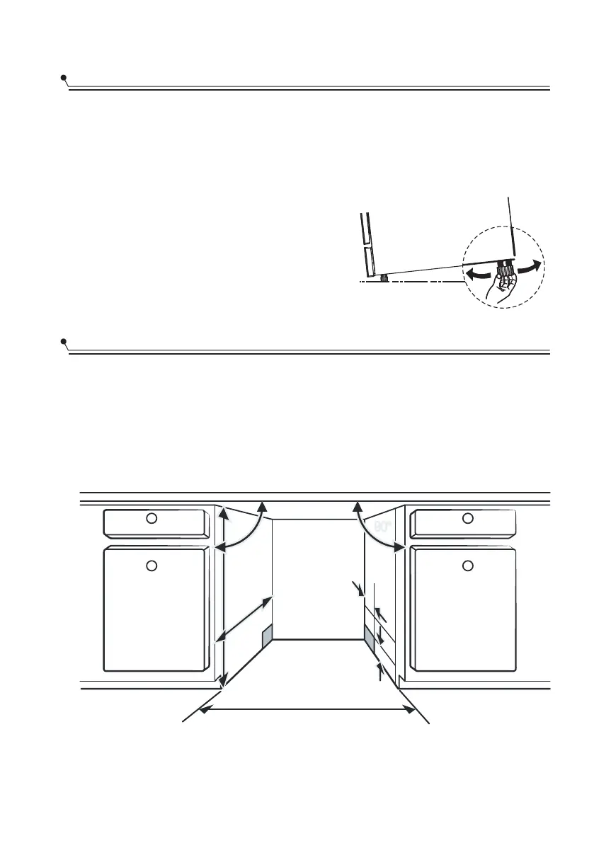 1. Less than 5 mm between the top of dishwasher and cabinet and the outer door