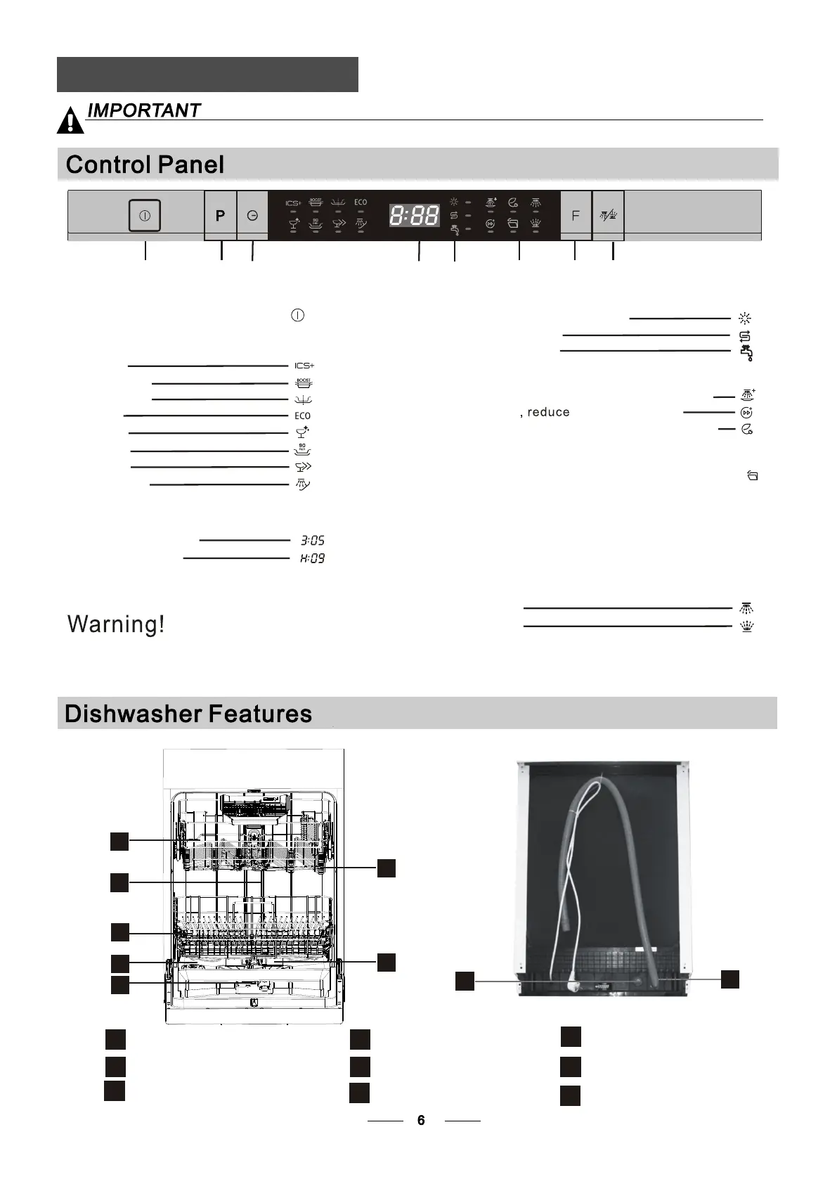 • Manual pre-rinsing of tableware items leads to increased water and energy consumption and is not recommended