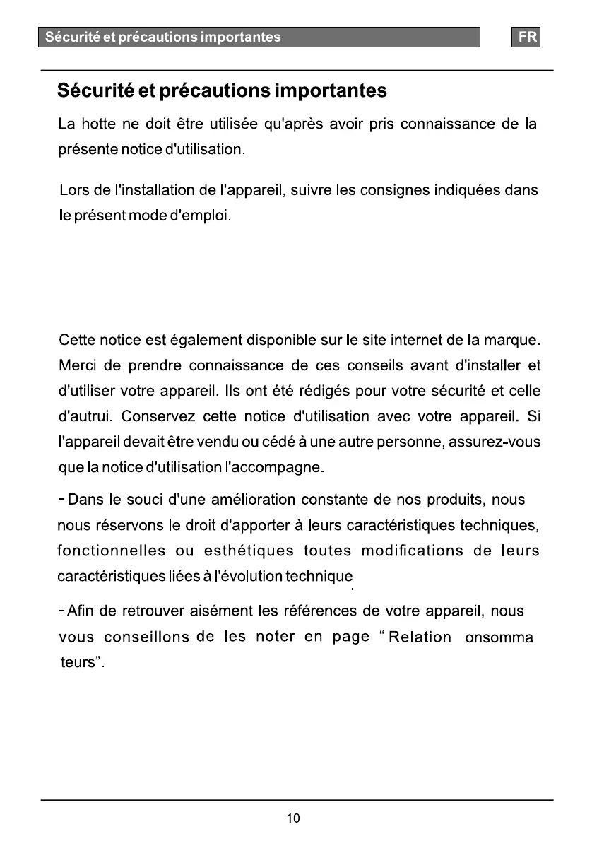 La hotte ne doit être utilisée qu'après avoir pris connaissance de la présente notice