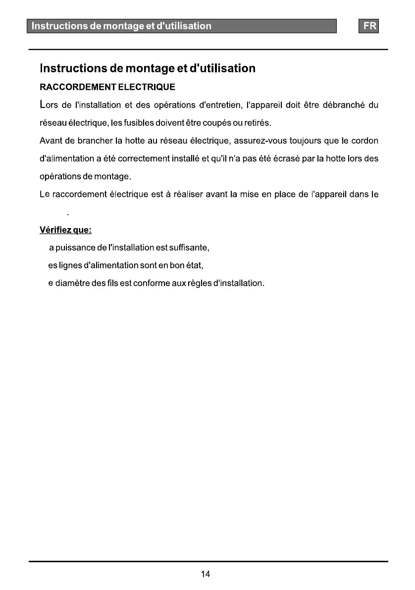 qualifié. Si la hotte présente une quelconque anomalie, débranchez l'appareil ou