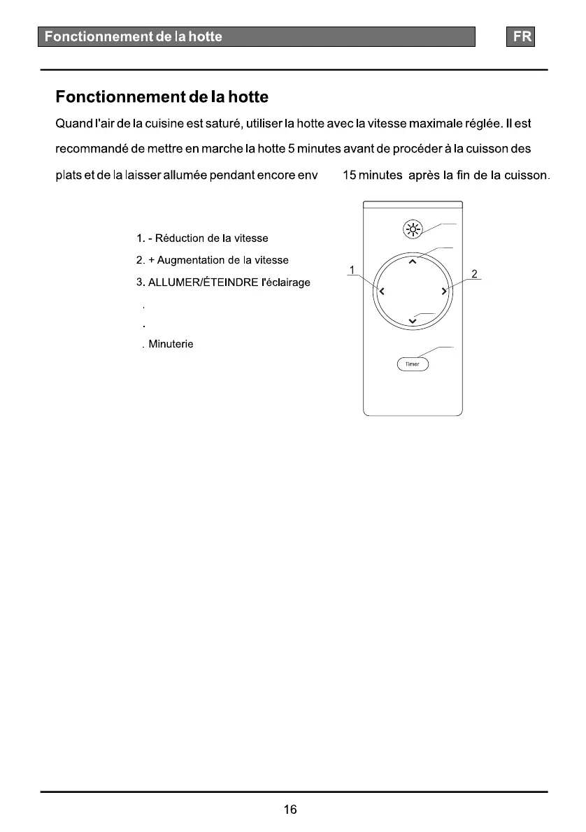 Minuterie - pour utiliser cette fonction; choisir la vitesse (touches 1 et 2) et