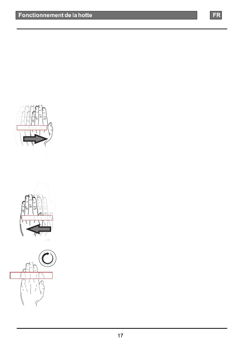 - Pour éteindre la hotte ou réduire la vitesse, faire un mouvement de la