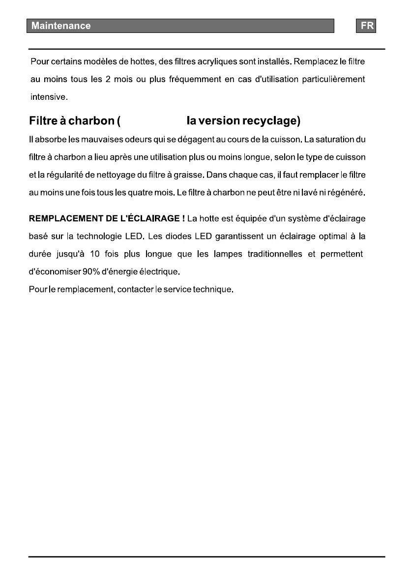 de nettoyage du filtre à graisse. Dans chaque cas,