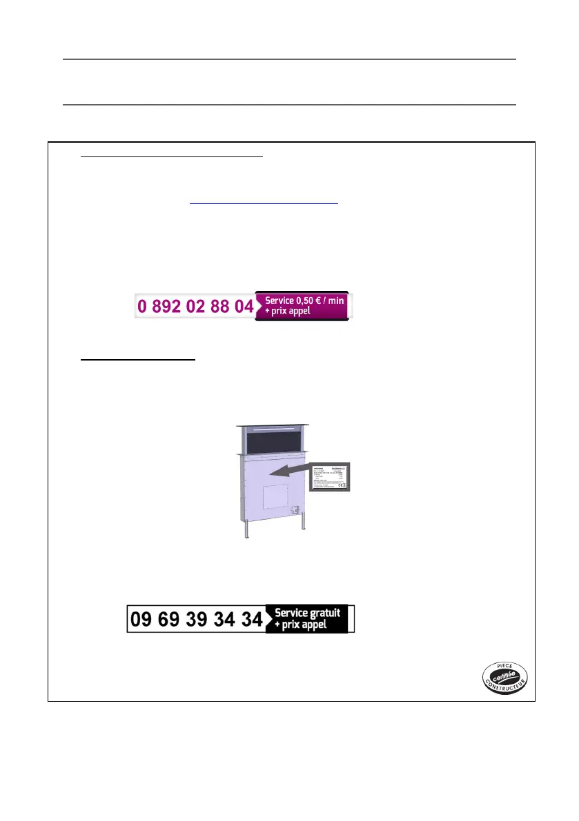 munissez-vous des références complètes de votre appareil (référence commerciale, référence service,