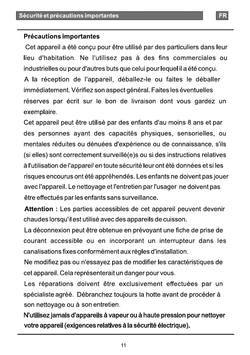 toujours la hotte avant de procéder à son nettoyage ou à son entretien.