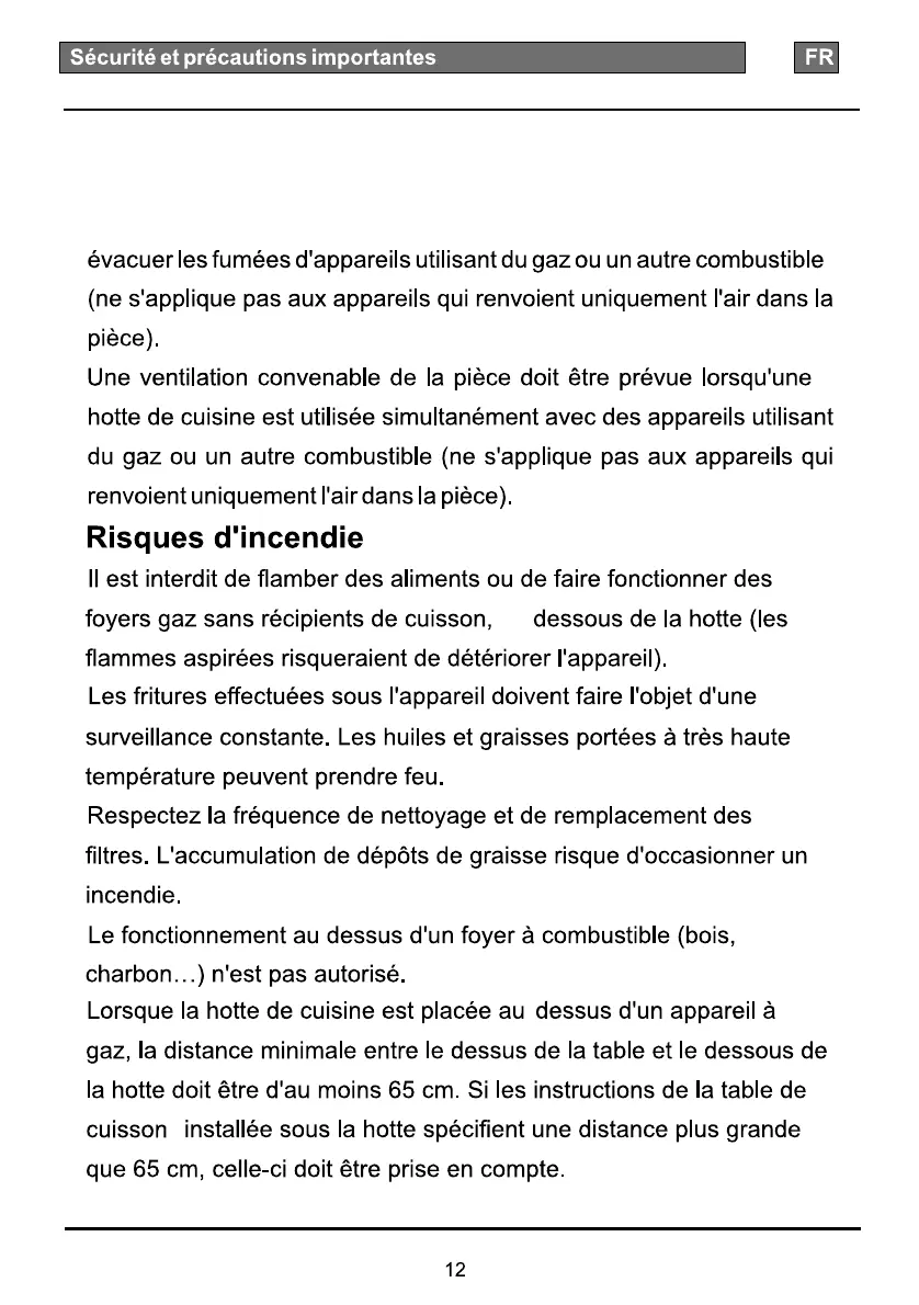 de la hotte doit être d'au moins 65 cm. Si les instructions de la