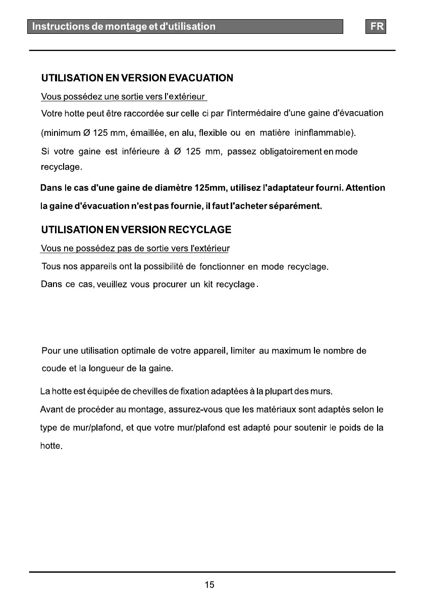 d'évacuation n 'est pas fournie, il faut l'acheter