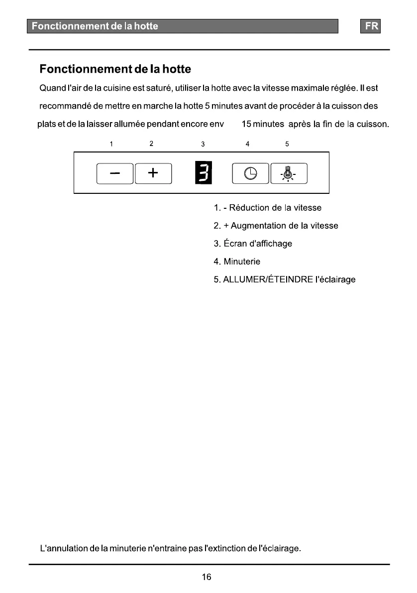 La minuterie permet d'éteindre la hotte après un temps déterminé. Cela sert à filtrer