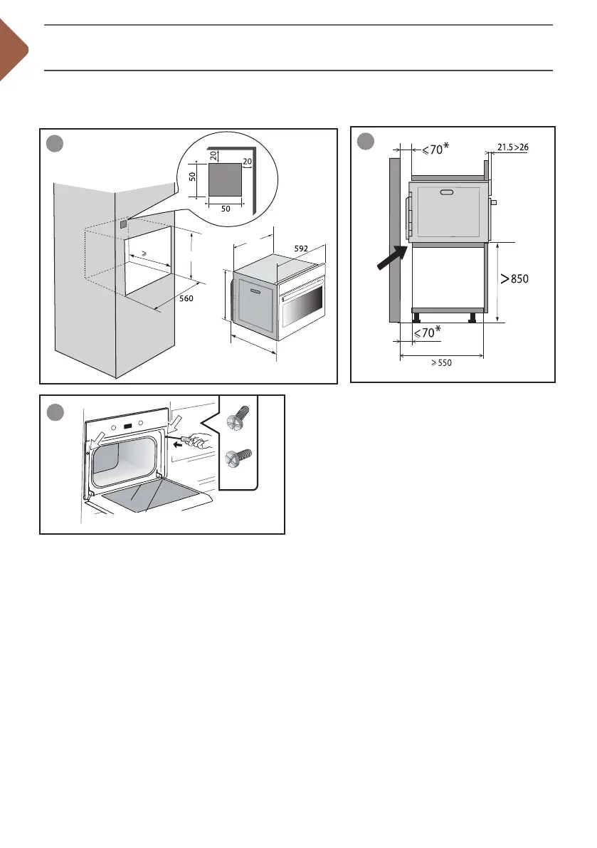 laquelle repose le four doit être de 70 mm