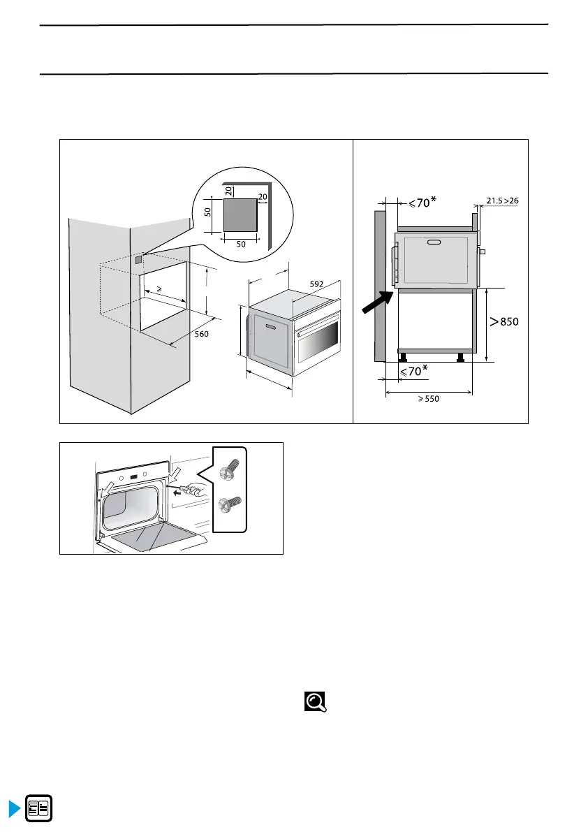 Fastgør ovnen ved hjælp af de 2 skruer. Sæt