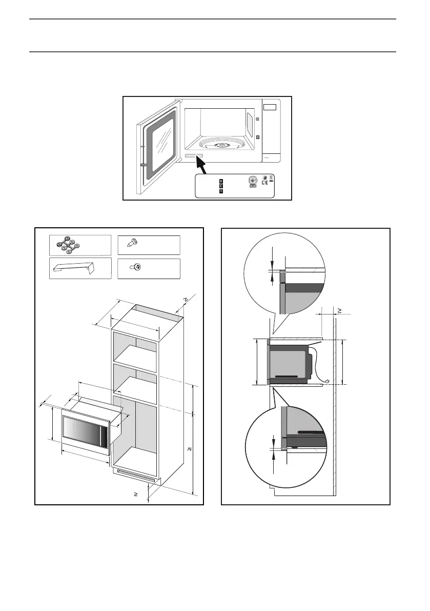Les schémas déterminent les côtes d’un meuble qui permettra de recevoir votre four. Cet appareil doit