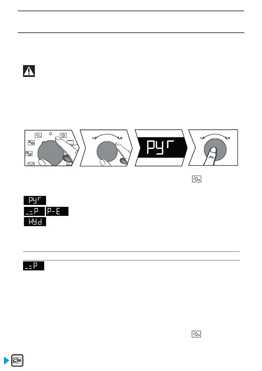 Choisir votre pyrolyse ou nettoyage vapeur à l’aide de la manette + et - en fonction du