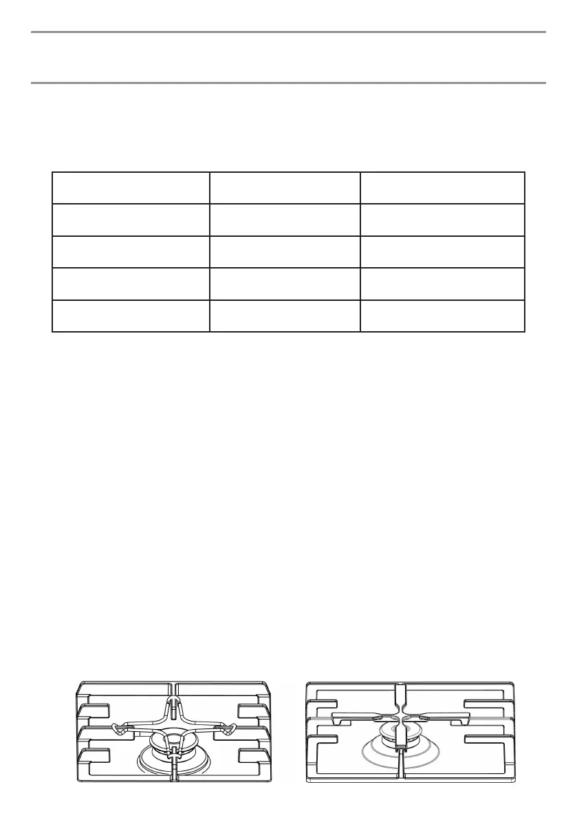 2•2 - PANS DIAMETER ACCORDING TO GAS BURNERS:
