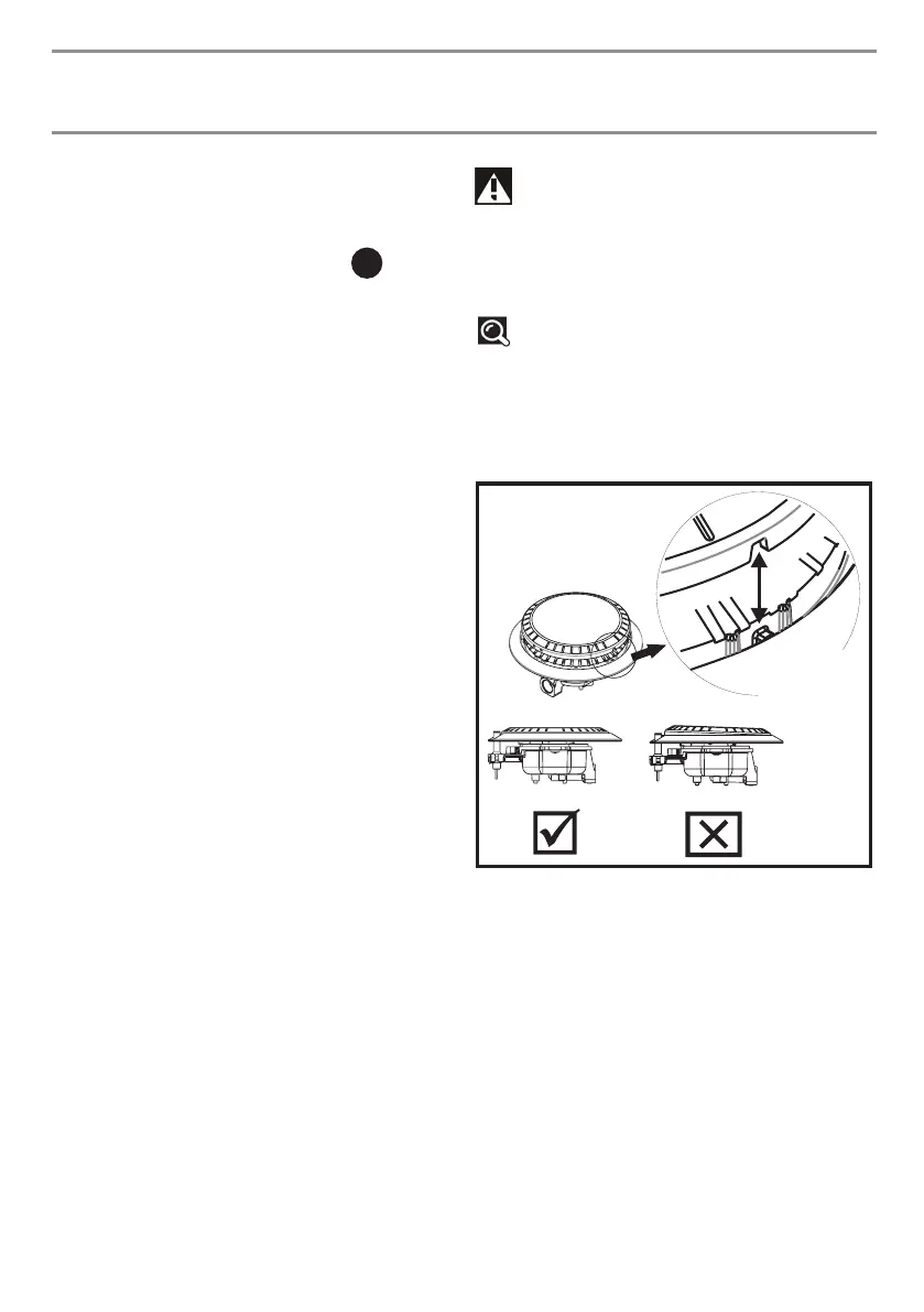 • The burner cap must be positioned