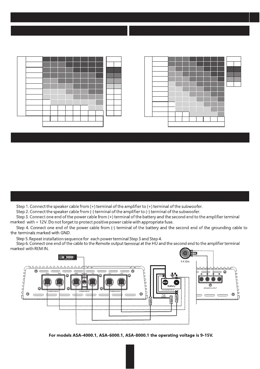 terminal of the battery, the second one – to the amplifier terminals marked with + 12V. Be sure to use a fuse with the parameters