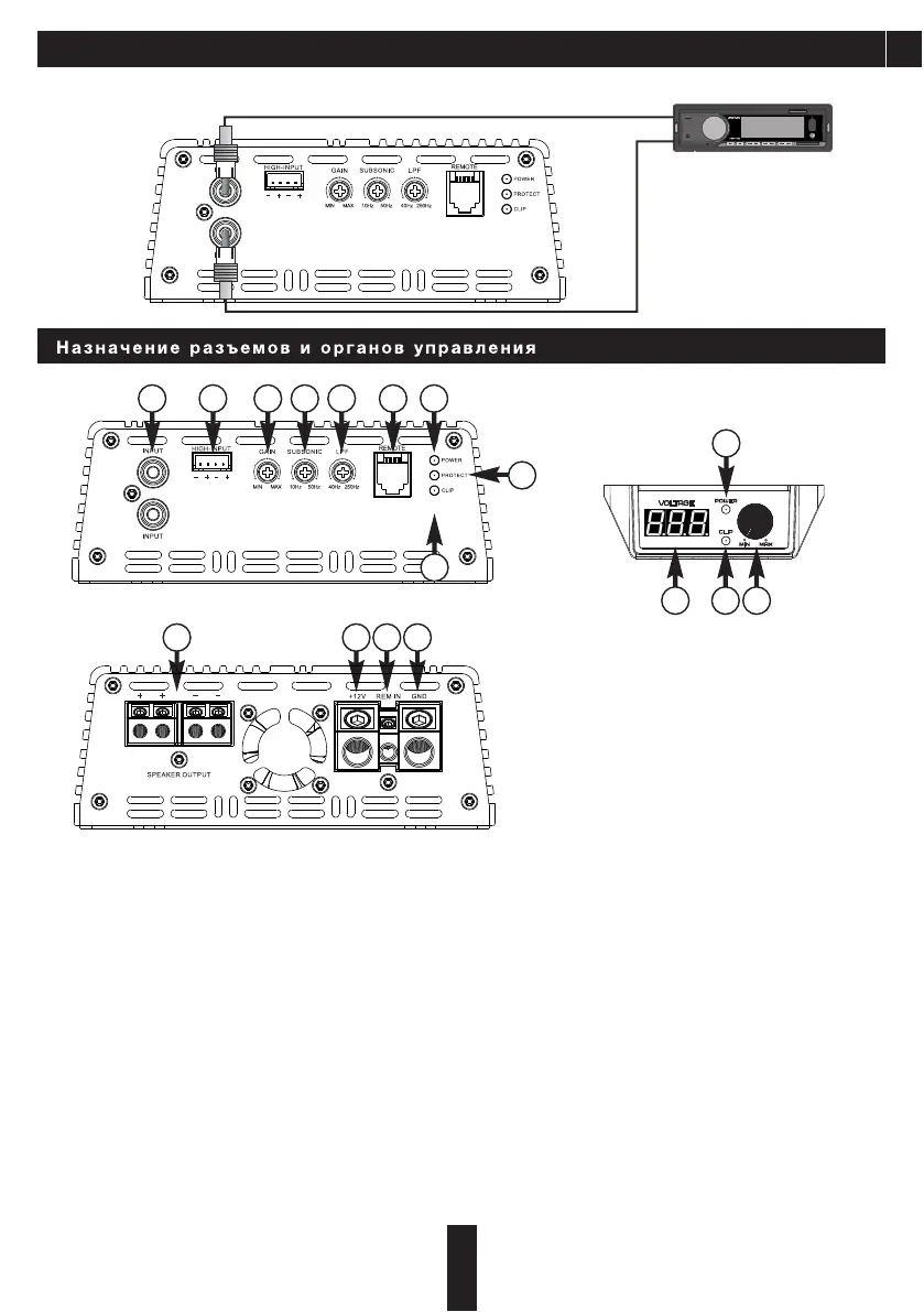 6. REMOTE – вход подключения дистанционного регулятора баса