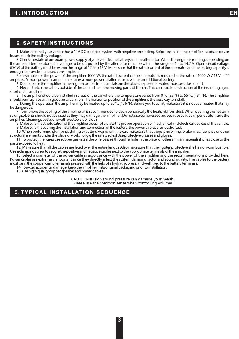 8. Fasten the amplifier properly when installing it in the vehicle. If the component is disconnected during driving, it may cause