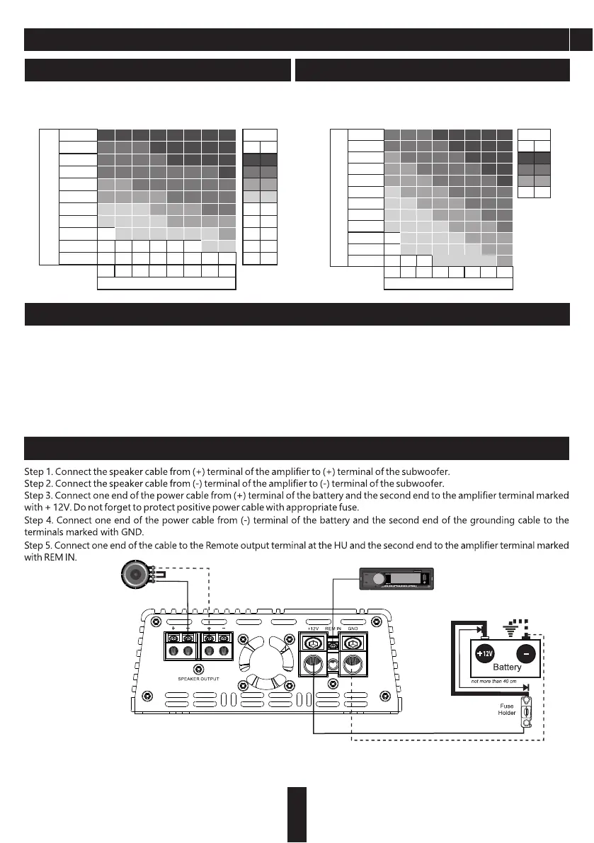 terminal of the battery, the second one – to the amplifier terminals marked with + 12V. Be sure to use a fuse with the parameters