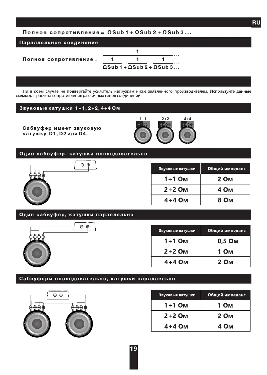 СХЕМА ВКЛЮЧЕНИЯ НАГРУЗКИ САБВУФЕРА
