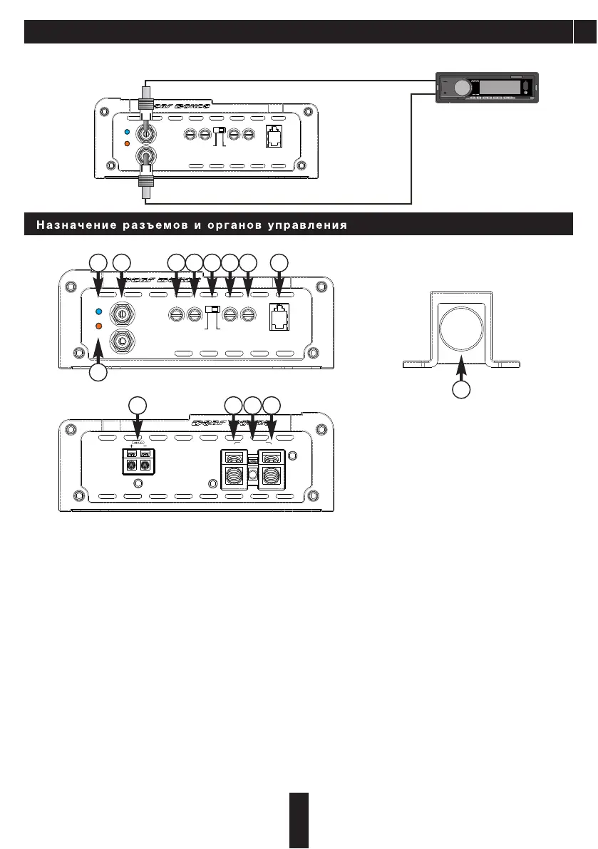 9. REMOTE – вход подключения дистанционного регулятора баса