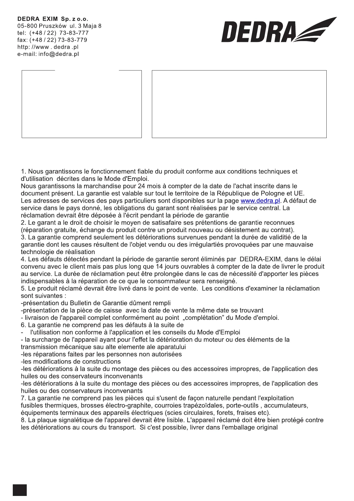 Bulletin de Garantie