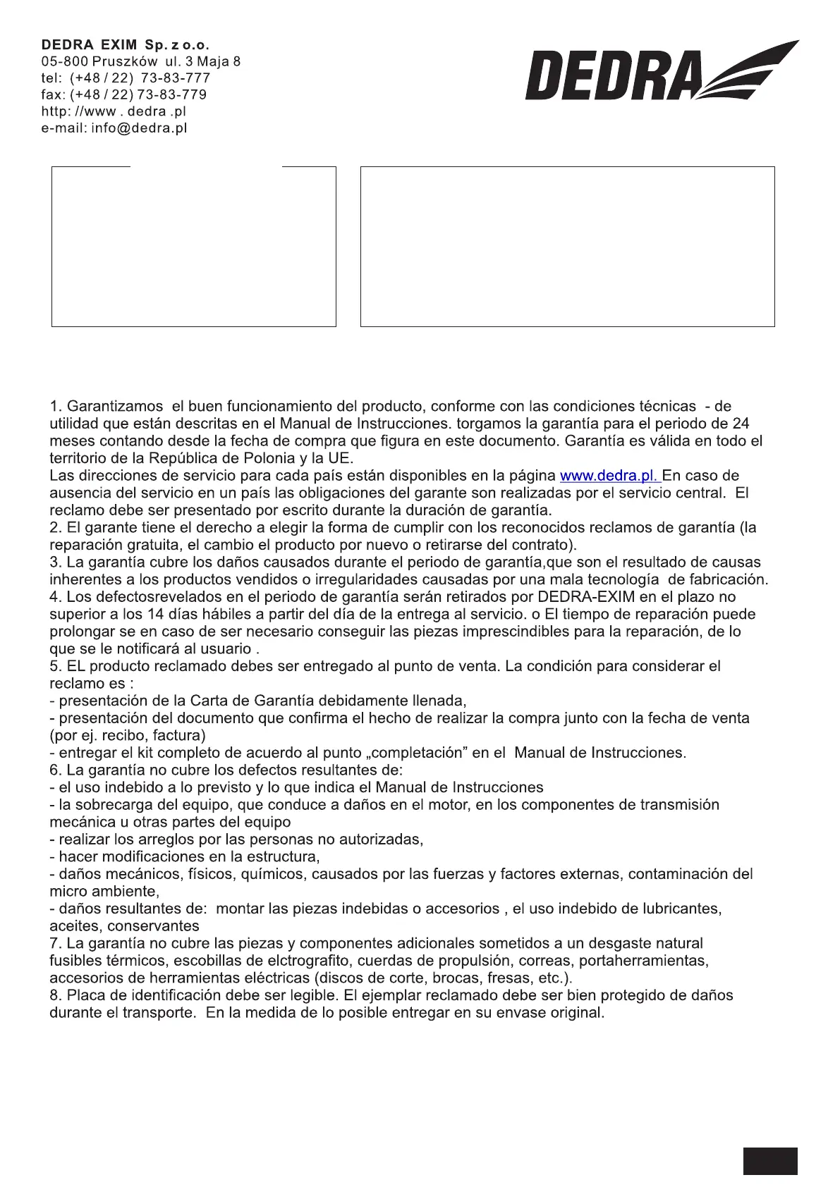 Conozco las condiciones de garantía, lo que confirmo con mi propia firma: