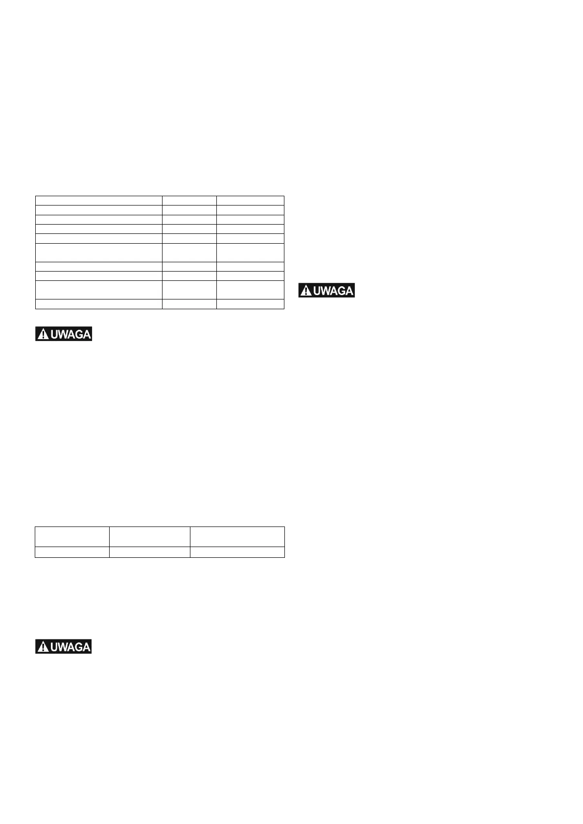 zależności od mocy urządzenia podano w poniższej tabeli: