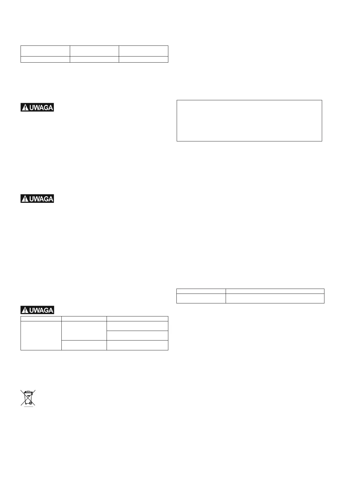 od wymaganego (patrz tabela). Przewód elektryczny ułożyć tak, aby w czasie pracy