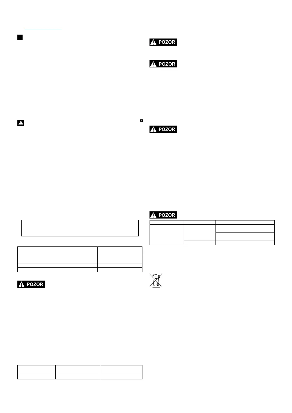 (viz tabulka). Elektrický kabel položte tak, aby v průběhu provozu nebyl vystaven