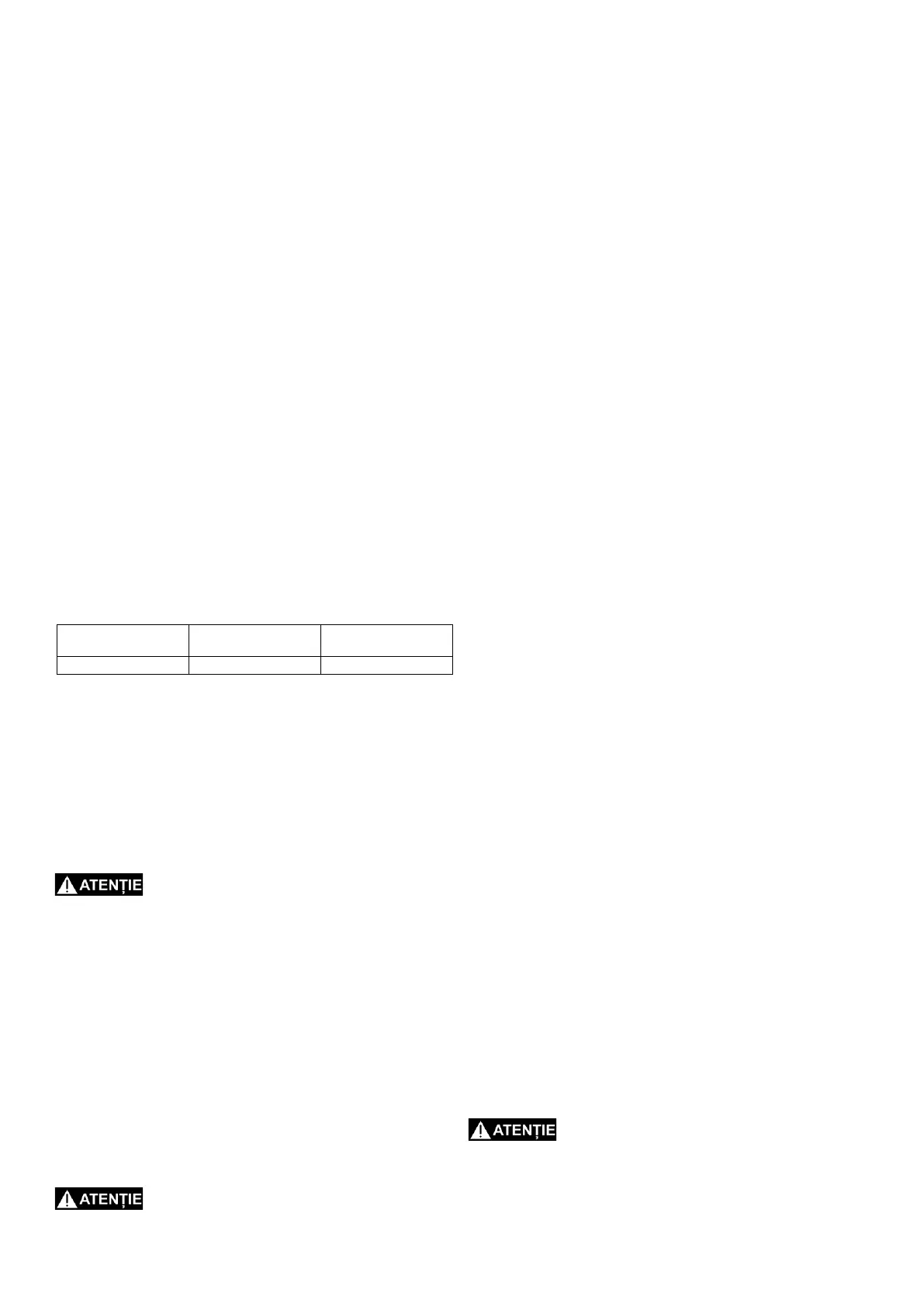mică decât cea cerută (vezi tabelul). În timpul lucrului cablul electric