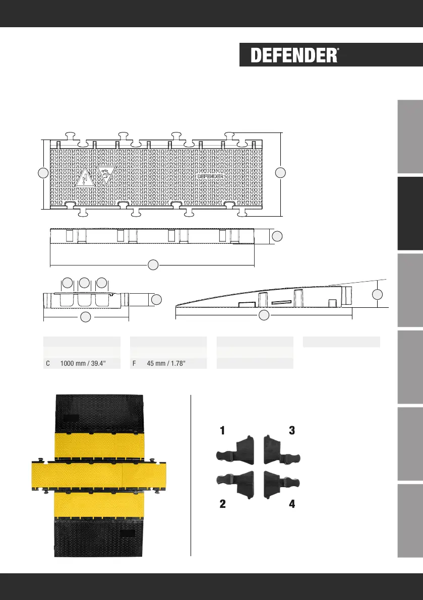 C 1000 mm / 39.4" F 45 mm / 1.78" I 600 mm / 23.62"