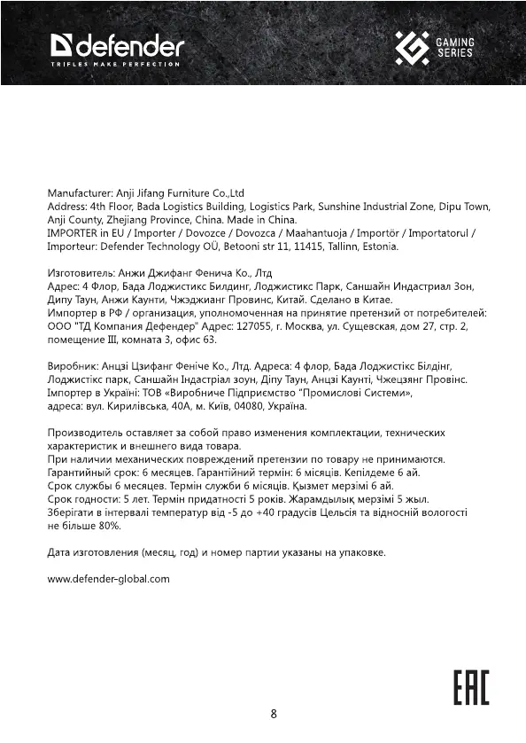 Defender Infinity handleiding
