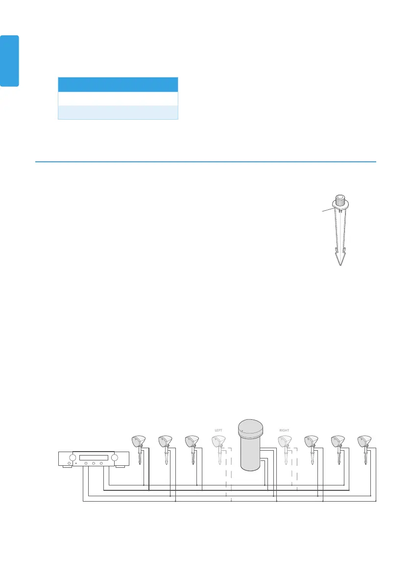 mounting locations. Note the flat indicator on the stake and ensure this indicator faces the desired speaker