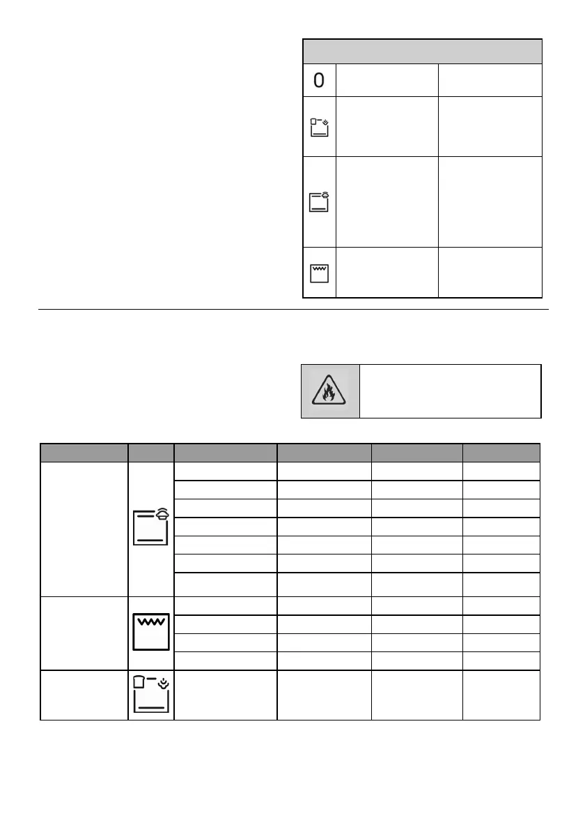 Oven mode Icon Food item Shelf position Temp setting (ºC) Duration (min)